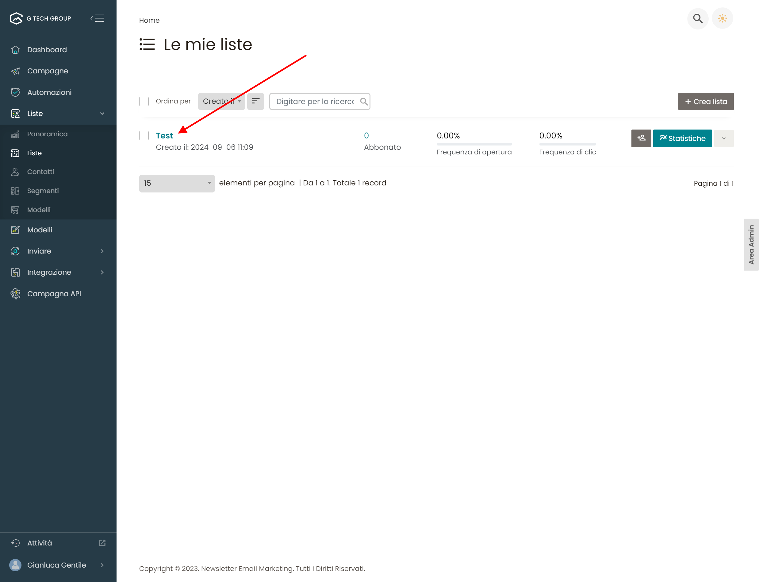 A questo punto, selezioniamo la lista desiderata cliccando sul nome della lista, accedendo così al suo contenuto.