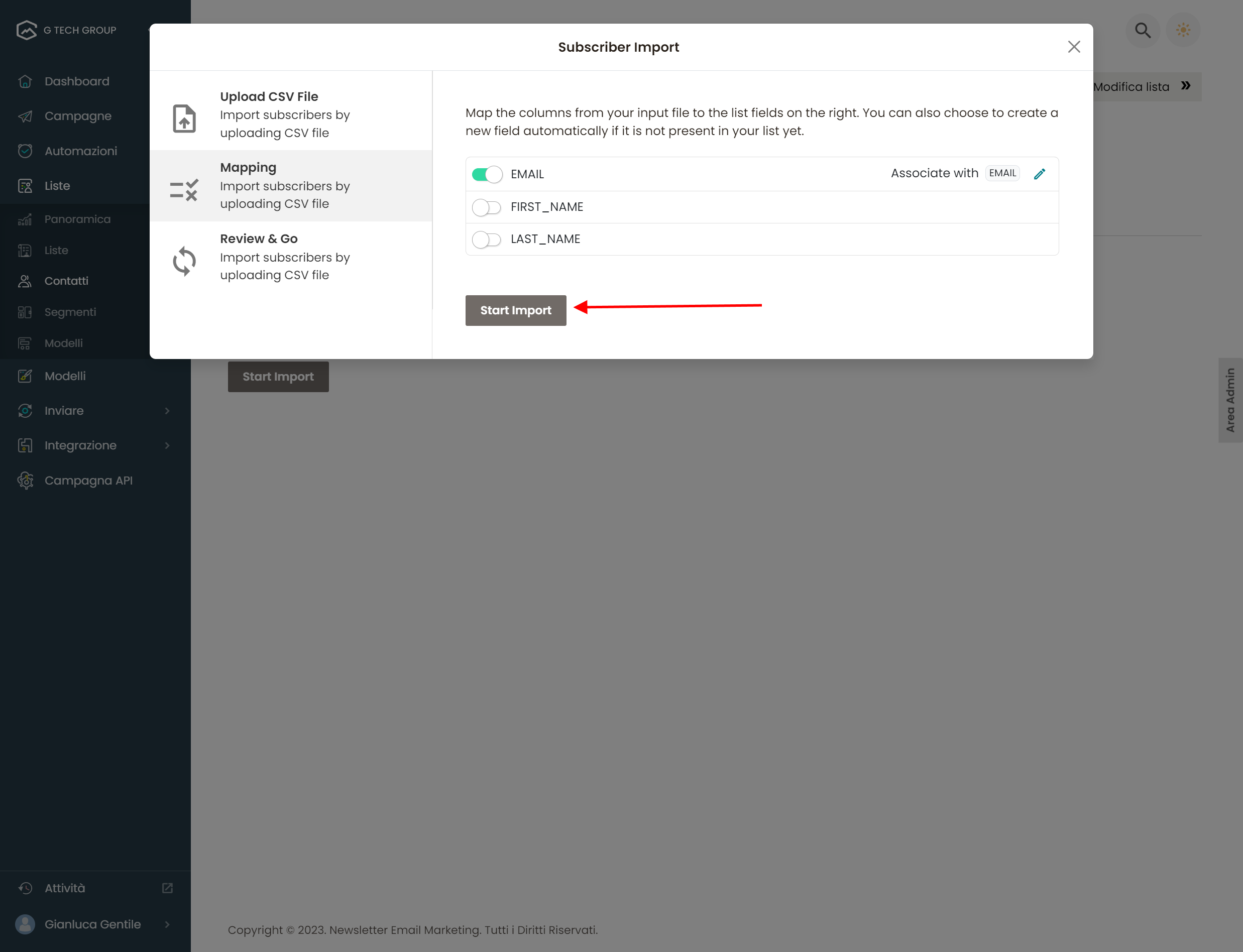 Completato questo passaggio, clicchiamo su "Start Import". Il sistema impiegherà alcuni secondi o minuti per importare i contatti, a seconda del numero di contatti.
