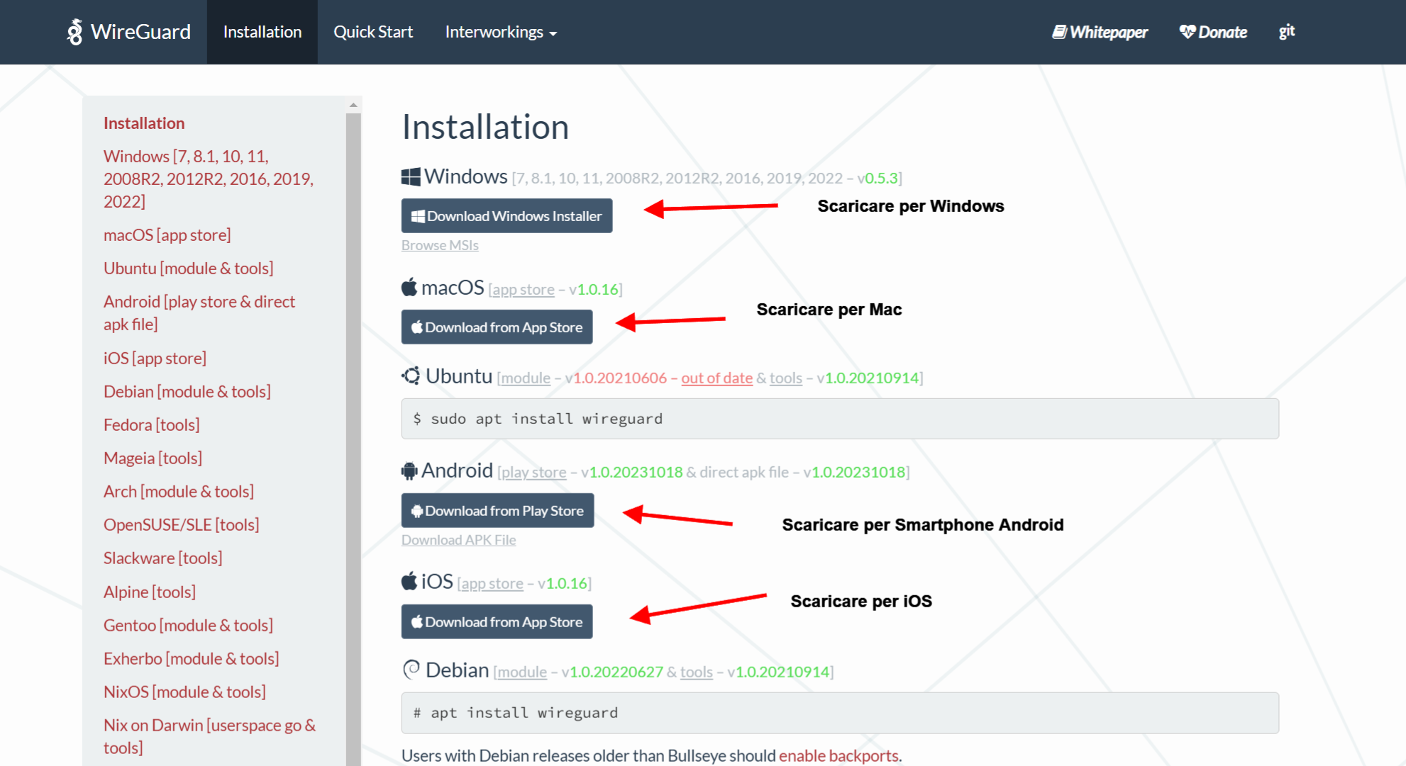 - Vai al sito ufficiale di WireGuard.